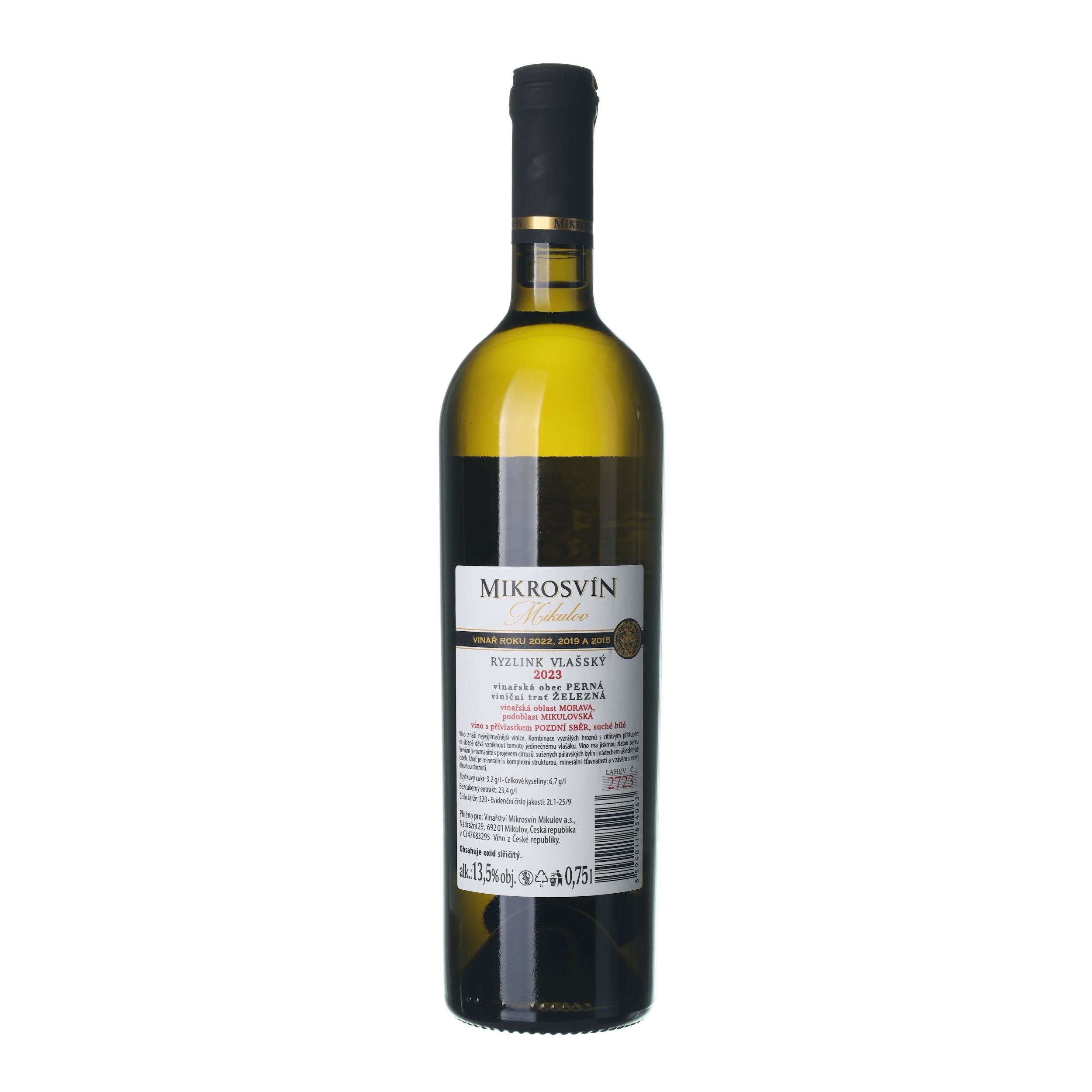 2023 Rizling vlašský Neskorý zber Perná, Železná Mikrosvín Mikulov (0,75l)