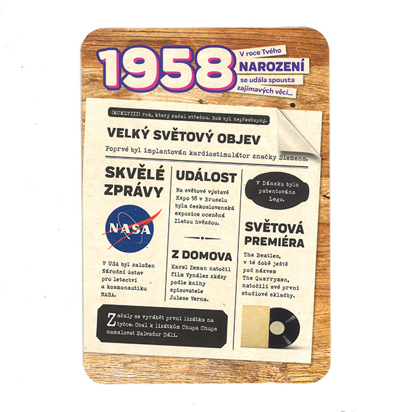 Retro prianie obsahujúce zaujímavé informácie, udalosti a osobnosti narodené v roku 1958 z Československa a celého sveta.