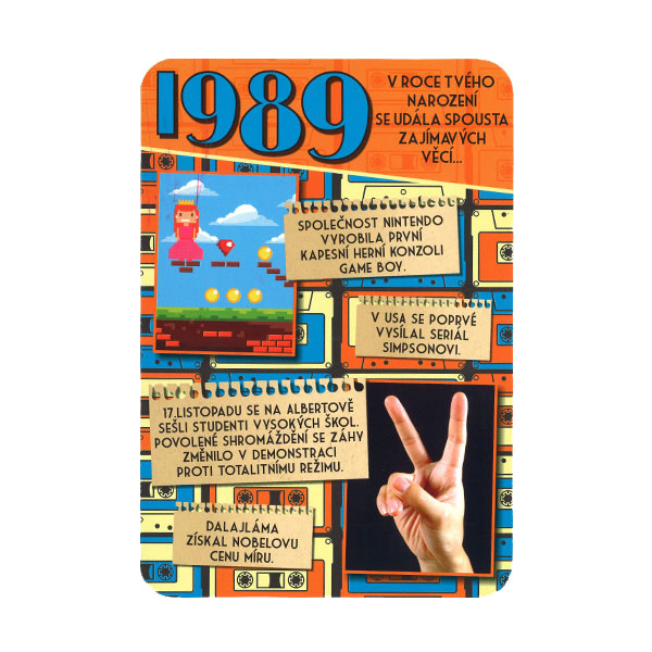 Retro prianie obsahujúce zaujímavé informácie, udalosti a osobnosti narodené v roku 1989 z Československa a celého sveta.